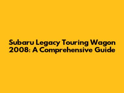 Subaru Legacy Touring Wagon 2008: A Comprehensive Guide