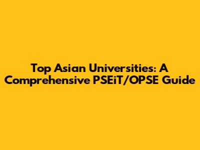 Top Asian Universities: PSEiT/OPSE Guide