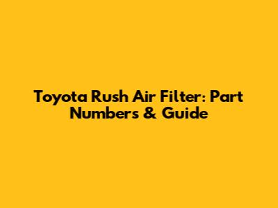 Toyota Rush Air Filter: Part Numbers & Guide