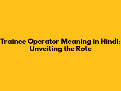 Trainee Operator Meaning In Hindi: A Complete Guide