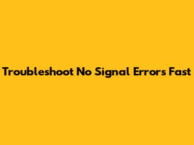 Troubleshoot 'No Signal' Errors Fast