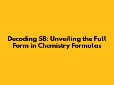 Unlocking The Mystery: SB Full Form In Chemistry Formulas
