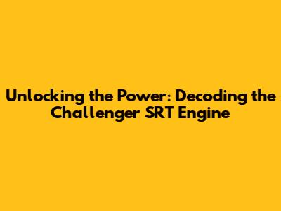Unlocking The Power: Decoding The Challenger SRT Engine