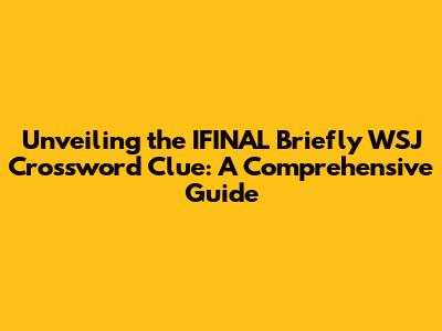 Hey crossword enthusiasts! Ever found yourself staring blankly at a clue in the Wall Street Journal crossword, desperately seeking that elusive answer? We've all been there! Today, we're diving deep into the clue "IFINAL briefly," a common stumbling block for many. We'll break down the meaning, explore potential answers, and equip you with the knowledge to conquer similar clues in the future. Get ready to flex those mental muscles and become a crossword pro! This guide is designed to not only help you solve "IFINAL briefly" but also to understand the strategies and thought processes involved in tackling cryptic clues. Let's get started, shall we?