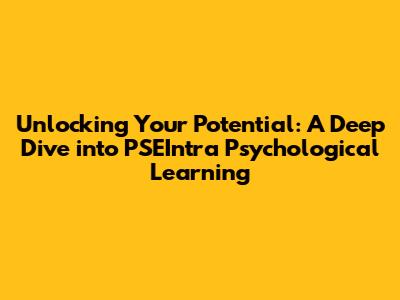 Unlocking Your Potential: A Deep Dive Into PSEIntra Psychological Learning